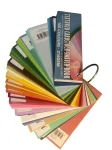 Swatch book: 125mm length, 45mm width on a large book ring
